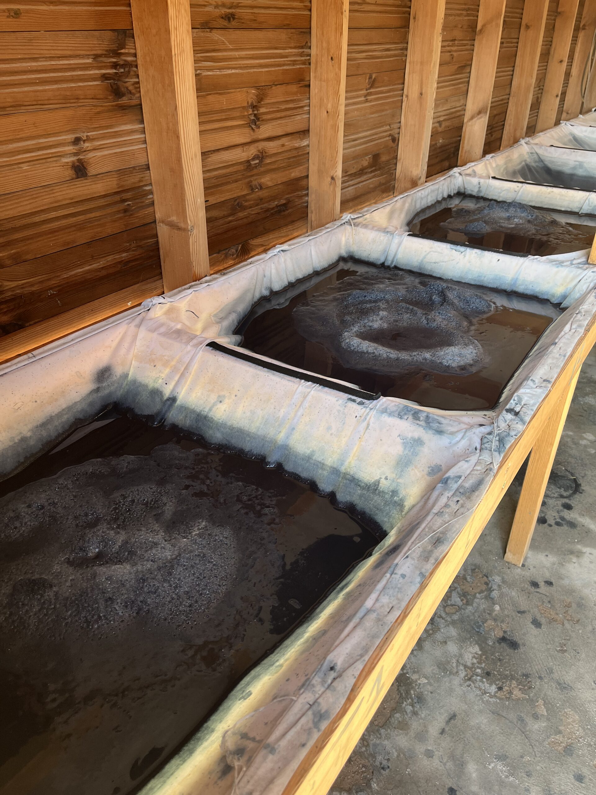 Décantations & lavage afin de récupérer l'indigo déposé au fond de la cuve