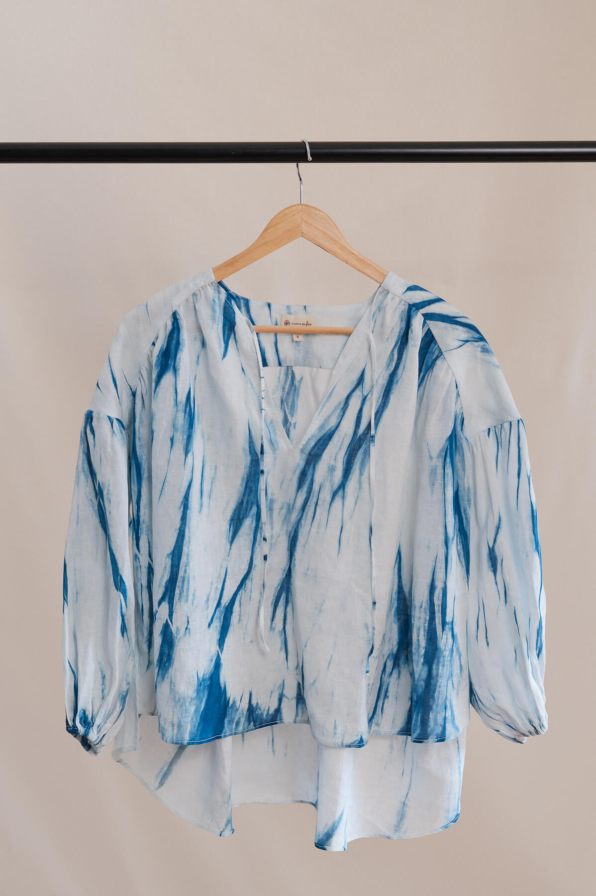 Confectionnée dans un lin à la fois doux et résistant, à la texture vivante, la. blouse LALI procure une sensation de fraîcheur exquise sur la peau. Issue d’un fin de rouleau soigneusement sélectionné, l’étoffe a été teintée artisanalement à l’indigo naturel, révélant des nuances profondes et vibrantes. Chaque pièce est unique, marquée par les irrégularités nobles du travail à la main.