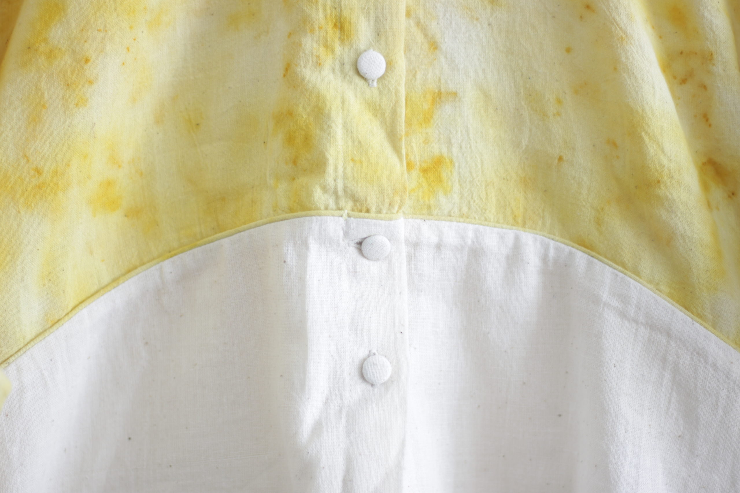 - Teintures à base de plantes : issues du vivant, elles varient dans le temps. Pour chérir le plus longtemps possible la beauté de la Nature, veuillez bien respecter les conditions d’entretien. Chaque pièce imprimée et teinte naturellement est unique en son genre et aura donc des légères différences d’une pièce à l’autre.